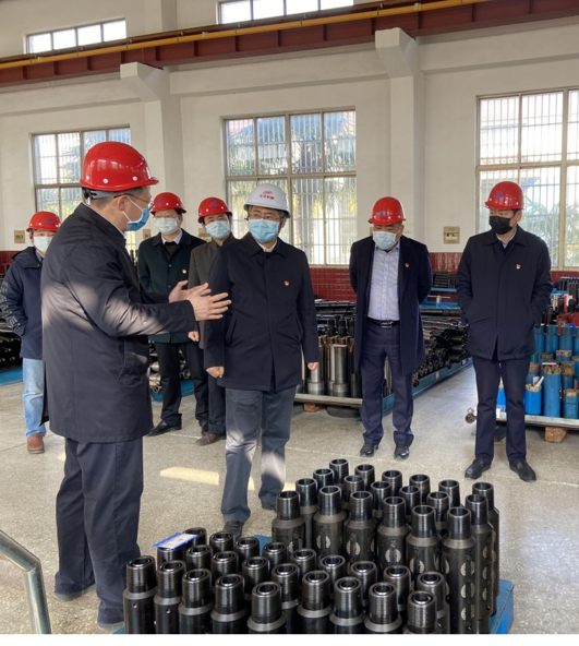 在調研過程中,徐書記首先了解了公司的新冠疫情防控工作和生產復工情況,重點就復工后減少員工聚集和集體活動作出了明確指示。在宏達機械的生產車間內,總經理顧靜波向徐書記介紹了公司的主營業務情況,尤其是公司今年重點推進項目——頁巖氣壓裂關鍵工具可溶解橋塞做了詳細的匯報。徐書記肯定了宏達機械各項工作,并且要求宏達機械要在條件允許的情況下,加快車間的智能化改造,為我縣經濟發展做出更大的貢獻。 |